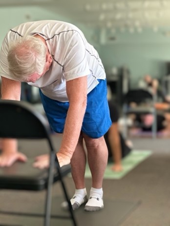 To facilitate a safe and comfortable experience for every participant, we incorporate adaptive equipment such as chairs, bolsters and fitness balls. One key element of our classes is Chair Yoga, a gentle practice that allows you to perform traditional yoga poses while seated or using a chair for support. Participants are guided by our instructor to incorporate chairs based on their individual needs and are encouraged to request them to optimize comfort. Using such equipment makes the Therapeutic Yoga classes at Back To Health accessible to everyone, allowing poses to be adapted to specific conditions, injuries, abilities and ages.